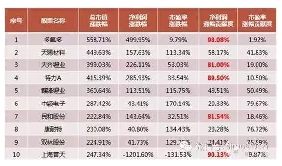 一年期10家市值成长最大的上市公司中,主要依靠净利润贡献的占6家,5家的利润贡献度为80%以上,不过主要依靠市盈率贡献的家数也有3家。可见,从一年期的角度看,虽然总体上净利润贡献仍是主导因素,但比起五年期和十年期,市盈率贡献的作用明显更大。