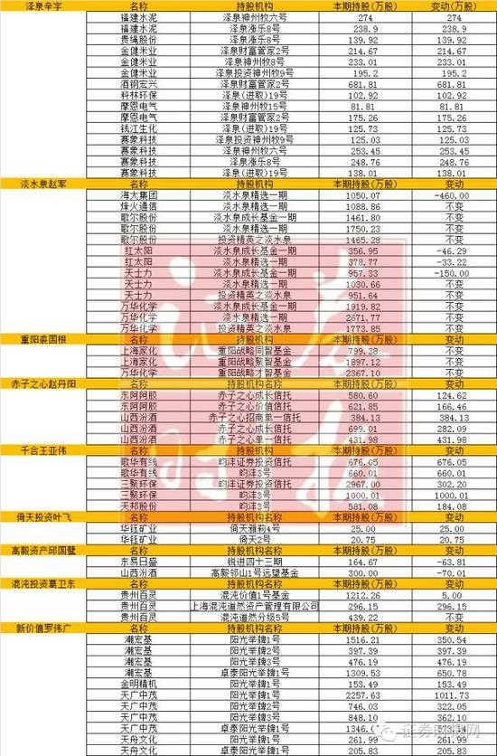 数据显示,王亚伟的昀沣证券投资信托二季度继续加仓三聚环保302.2万股,达到2967万股,另一只产品昀沣3号集合资金信托计划也新买入1000万股,王亚伟二季度末已合计持有三聚环保3967万股。另外王亚伟二季度新进歌华有线1336万股,增持天邦股份184.08万股。同时王亚伟二季度从廊坊发展10大流通股东名单退出,从而错过了廊坊发展的大涨。