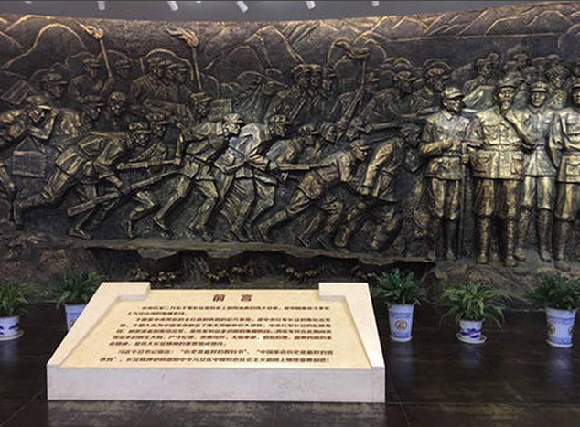 纪念馆大厅的一组浮雕,再现了红军长征的历史。