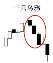 信号:逃顶时机出现。市场第四天开始一般会略有反弹,反弹位一般不会高于第一根阴线的收盘价,此处为卖出的最好价位。
