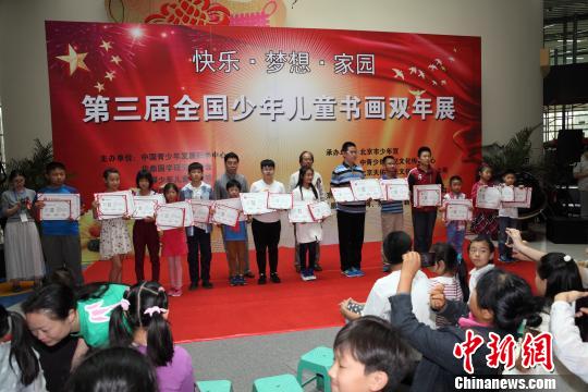 第三届全国少年儿童书画双年展24日在北京市少年宫拉开帷幕。