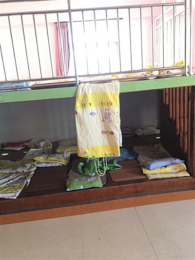 据其描述,当天的监控显示,中午12时许,孩子们上床午休。床在教室里,分为上下铺,他的儿子睡在下铺。