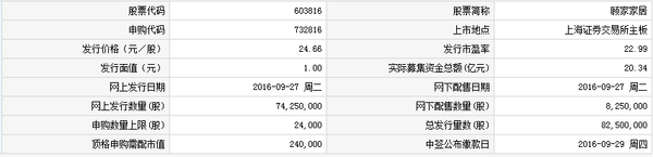 根据上交所13日公告,顾家家居股份有限公司将于10月14日(周五)起在上海证券交易所主板上市交易。公司首次公开发行股票数量8,250万股,发行价格为24.66元/股,发行市盈率为22.99倍,股票简称为“顾家家居”,网上申购代码为“603816”。