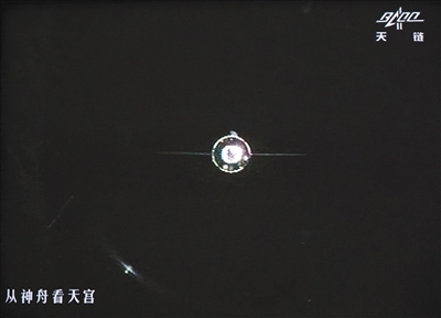3时24分,对接环接触,进入捕获锁紧程序。对接锁紧完成,自动交会对接成功。