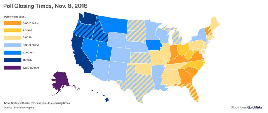 各州投票点关闭时间