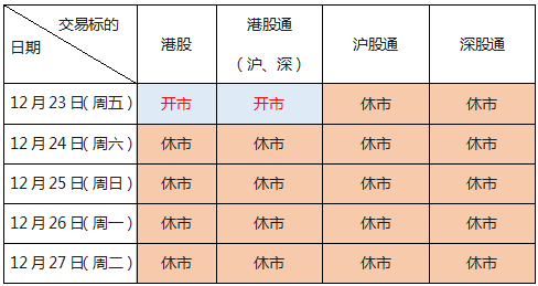 港股圣诞节休市2天 深股通、沪股通周五起暂停交易