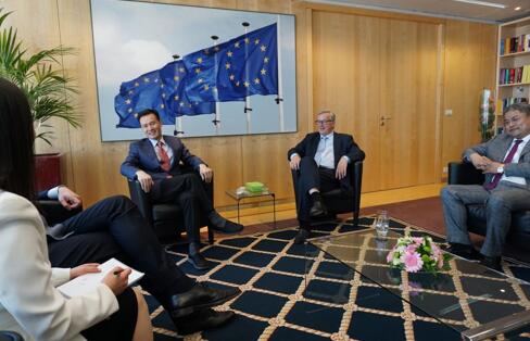欧盟委员会主席容克在办公室亲切接见中国华信董事会主席叶简明