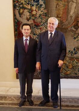 捷克总统泽曼在官邸内会见中国华信董事会主席叶简明