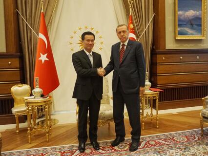 土耳其总统埃尔多安在安卡拉总统府亲切接见中国华信董事会主席叶简明