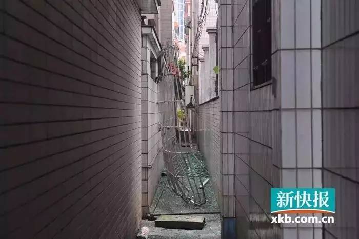 大量玻璃碎片散落到一楼。新快报记者祝樊川/摄