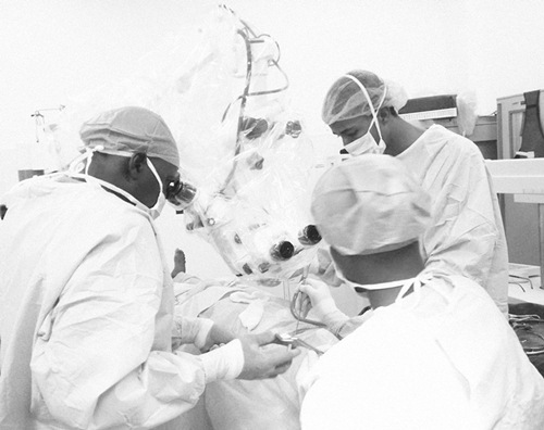 经过培训,三位几内亚大夫已经可以熟练地操作显微镜下神经外科手术。