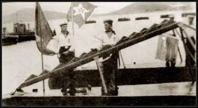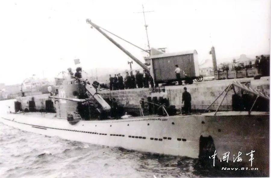 图①为中苏潜艇交接仪式上的升旗仪式,中国和苏联两名水兵前面的锯齿状设备,是C级潜艇的防潜网切割锯。1959年7月,414、425、426号潜艇进行中国海军潜艇的第一次22天的远航。