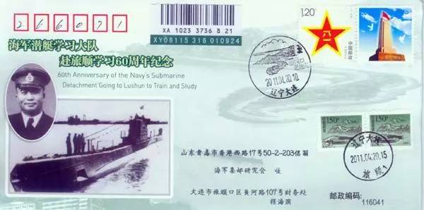 图②为纪念海军潜艇学习大队成立发行的纪念封,头像为中国海军潜艇部队的先驱,原海军副司令员傅继泽同志。