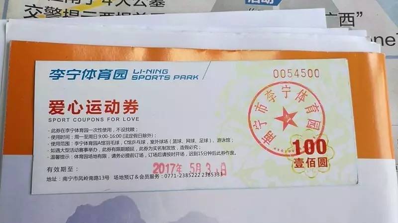 恭喜恭喜,你们免费获得价值100元的李宁体育园爱心运动券1张。