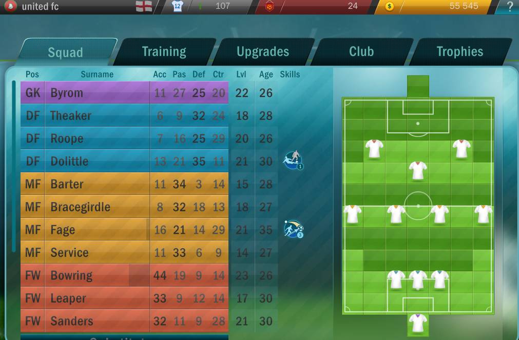 除了这个核心系统以外,其他的能力值成长、阵型、俱乐部建设等等要素,这个游戏基本还是具备的,只不过整个游戏才400多m,也鼓捣不出什么大玩意。喜欢这种类型,看着fm又头大的朋友们,或者喜欢战棋类游戏的朋友们可以试试看......
