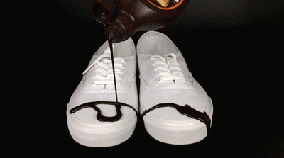 比如巧克力酱、番茄酱、纳豆酱倒在小白鞋上