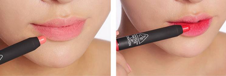 再用深色唇膏涂于双唇内侧