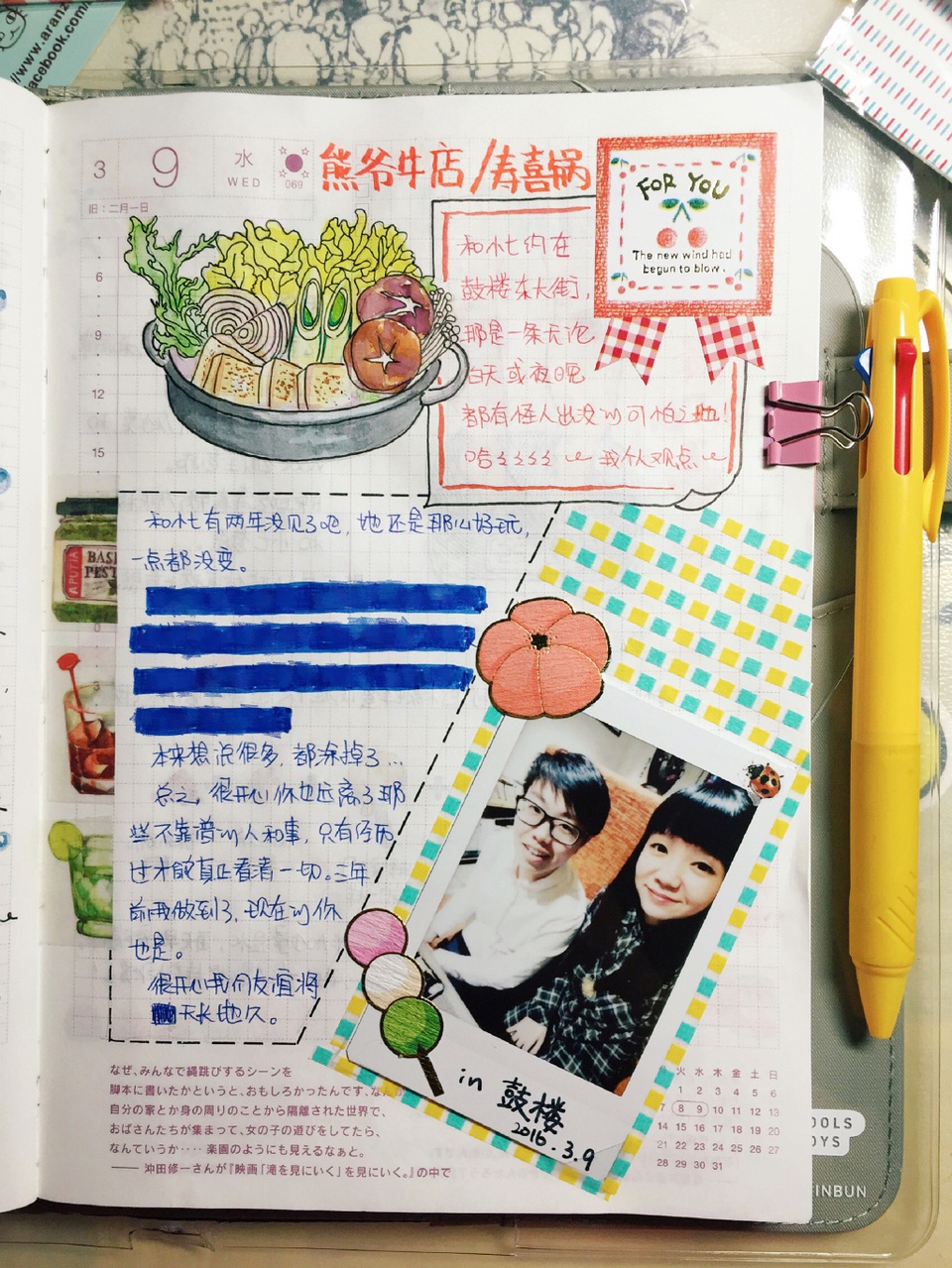 【3月9日手帐】啰里八嗦打算写一堆话,想想还是算了,好累,开心就好喽???p.s.鼓楼真的永远都有怪人晚上走在路边真吓死了要