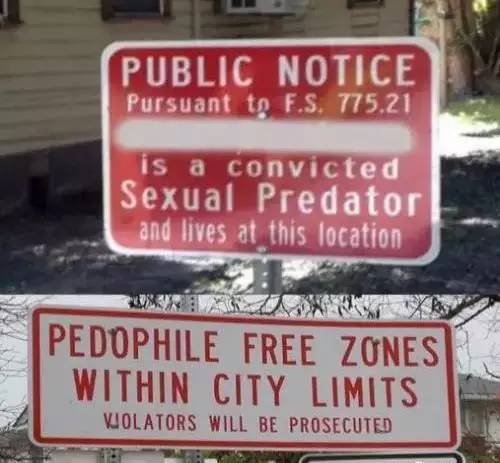 在美国,性侵犯系统是对公众开放的,任何人都可以上去查阅家附近有没有性侵犯,以此决定是否要在此地买房、上学等重要的问题。有些地方甚至会专门设立恋童犯禁区Pedophile Free Zones,不允许他们靠近。