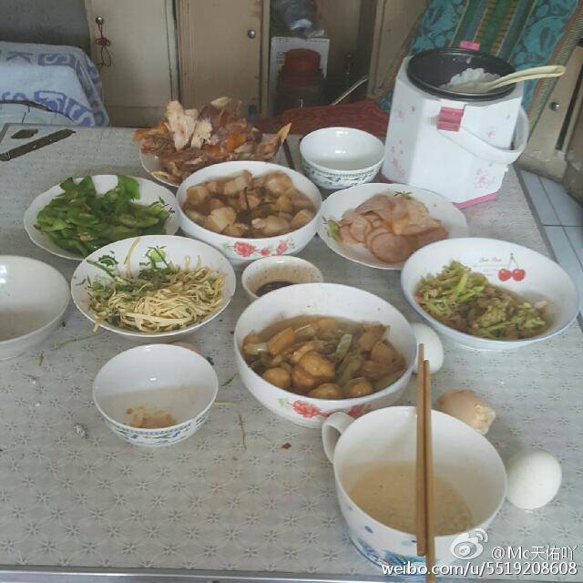 MC天佑在端午节和家人一起吃简单的饭菜 / 微博
