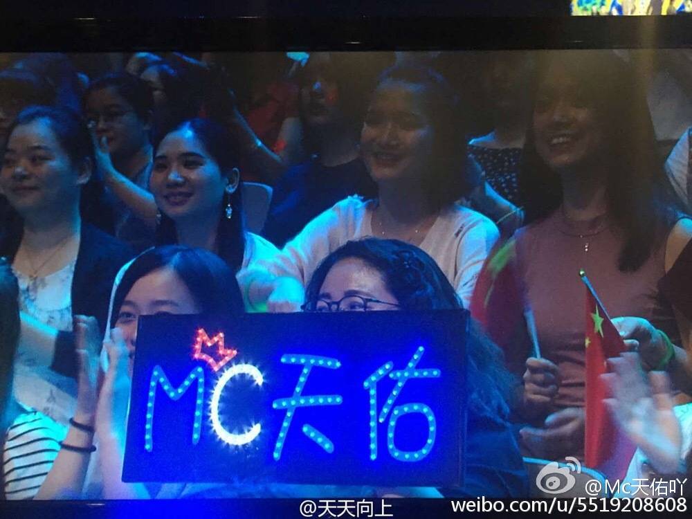 在《天天向上》台下支持MC天佑的观众 / 微博