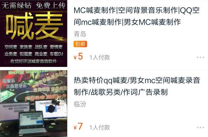 如今淘宝依然有大量QQ空间喊麦业务,而且比以前便宜的多 / 淘宝
