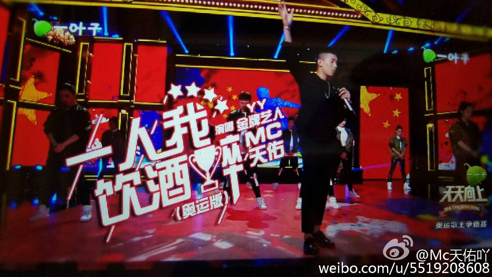 MC天佑在《天天向上》中演唱了奥运版《一人我饮酒醉》 / 微博