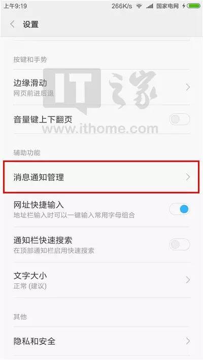 点击“消息通知管理”;