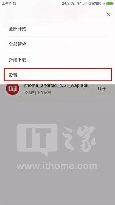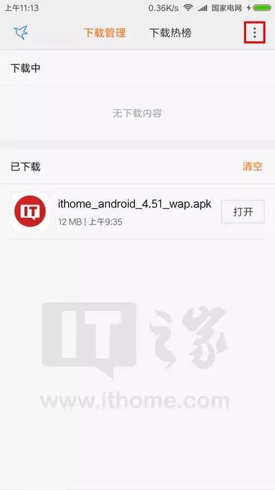 打开下载管理,点击右上角的菜单按钮(竖排三个圆点);