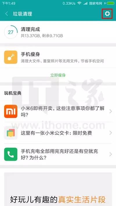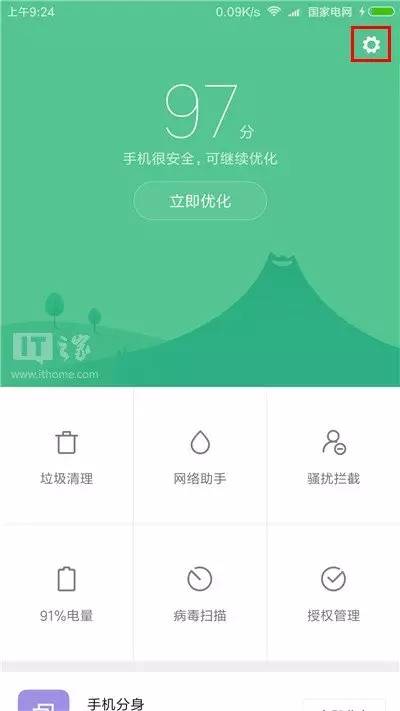 清理过垃圾后,点击右上角的设置按钮(齿轮状);