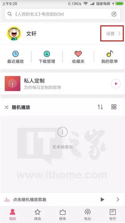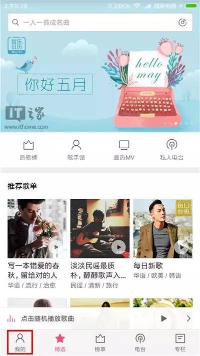 进入音乐,点击左下角的“我的“图标;