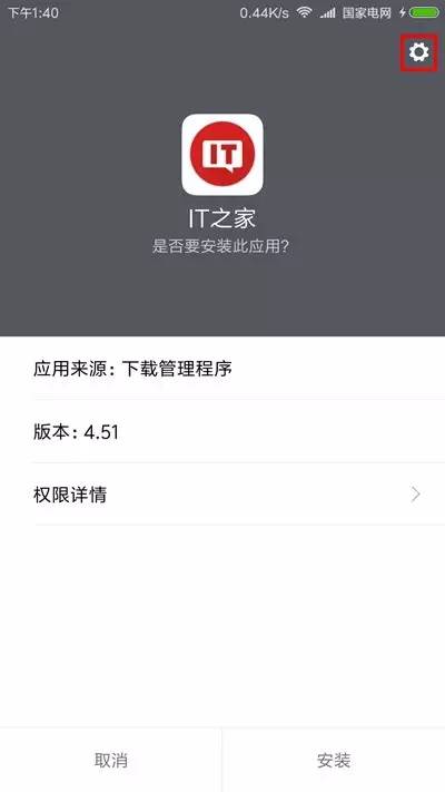 打开一个APK安装包后,点击右上角的设置按钮(齿轮状);