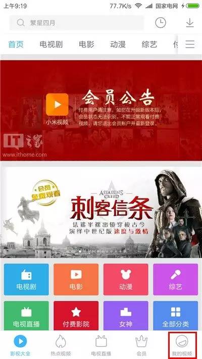 进入小米视频,点击右下角的“我的视频”;