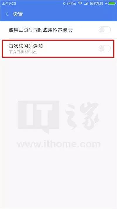 将“每次联网时通知“关闭。