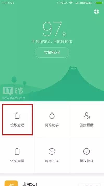 进入安全中心的垃圾清理;
