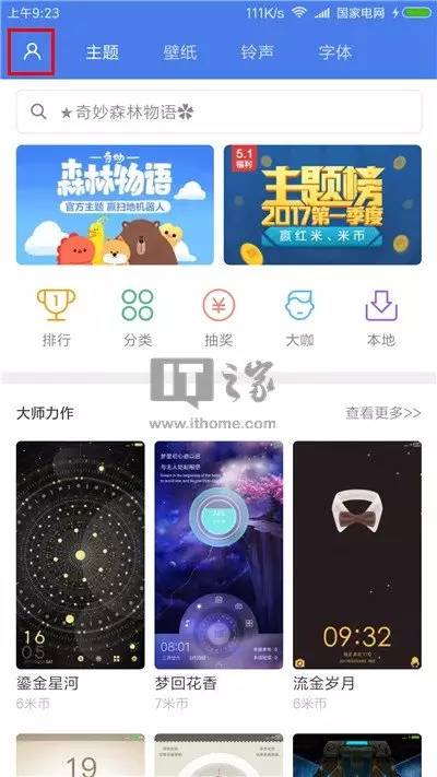 进入个性主题,点击左上角的头像按钮;