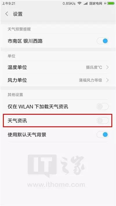 将“天气资讯”关闭。