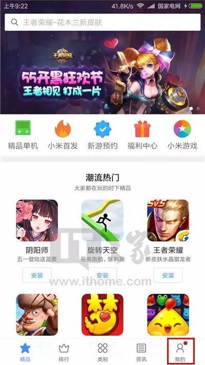 进入小米游戏,点击右下角的“我的”按钮;