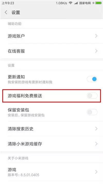 将“游戏福利免费推送“关闭。