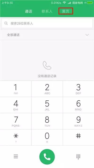进入电话,切换到“黄页“选项卡;