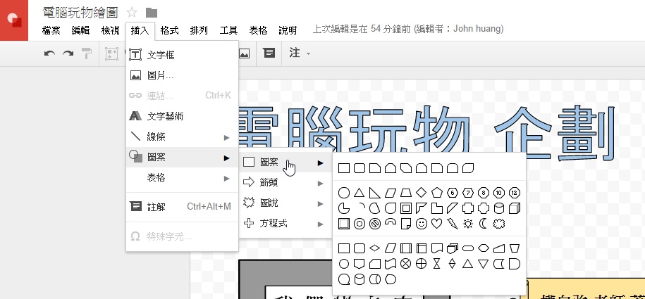 另外因为我自己大量使用 Google 云端硬盘工作,所以有时候我也会直接使用内部的「Google 绘图」,来画出 PPT 或工作报告中需要的流程图图表。