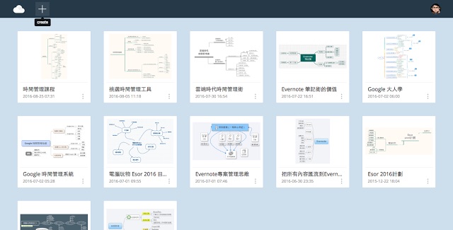 最近我使用它的频率比较高,是因为 XMind 终于支持跨平台的云端同步,包括线上网页版,以及支持手机绘图的行动网页版。