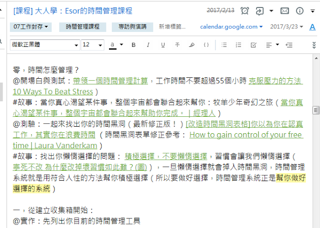 但我认为,文字的思考也有局限,例如之前我在规划自己一整天的 Google 云端办公室、 Evernote 知识整理术、时间管理实作等课程。