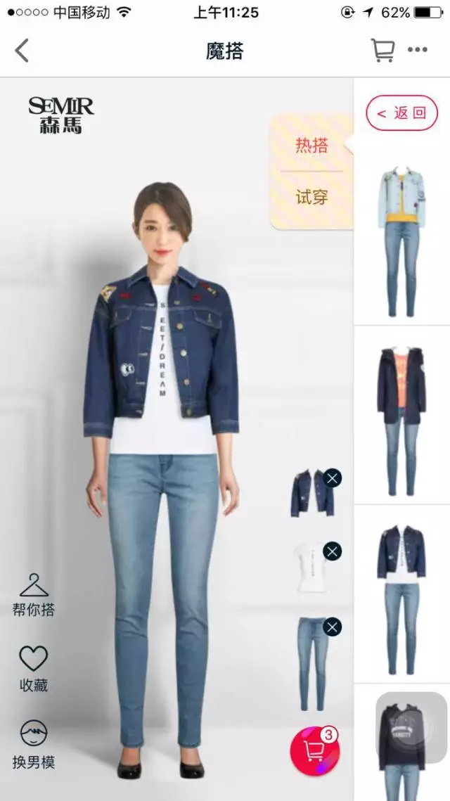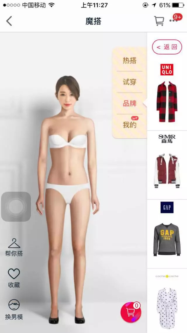 有没有看起来很贴心,很流弊的样子。但等到你买衣服的时候你就“懵逼”了,因为这并没有什么值得借鉴的价值——你的身材和你的脸根本没法跟人家模特比。而且模特并非3D,而是平面的,也就是说,你根本看不到这件衣服其他角度长啥样。而且并不是所有你看上的衣服都有这个“试穿”特权,能试穿的sku并不全。摸着良心说,你会用这个“试衣间”来指导自己购衣吗?