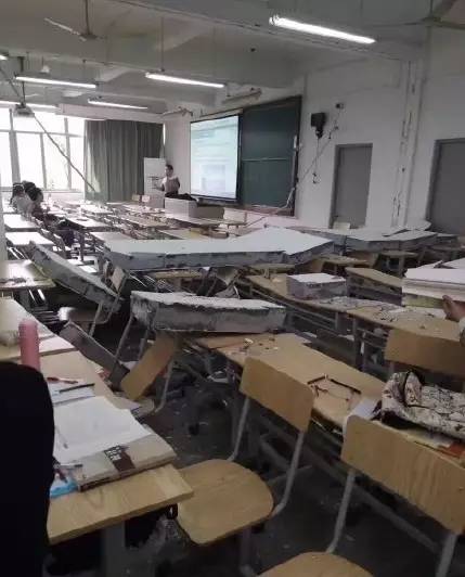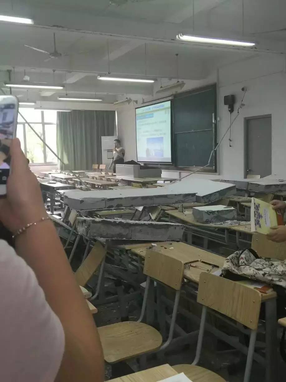 今天上午上课的时候,嘉兴学院外语楼207教室的墙面突然倒塌。