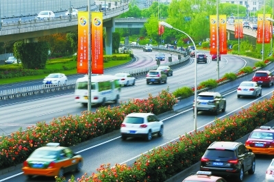 ▲京城主要道路及会场周边鲜花盛开,彩旗飘扬,一派喜庆祥和的景象。