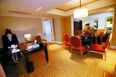 ▲负责“一带一路”国际合作高峰论坛中外代表团接待工作的各大酒店提前着手,按照最高标准对参与服务工作的人员进行强化培训。