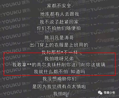 陈羽凡还对跟拍的记者说,自己已经十分害怕被偷拍,回到家里哪怕去地下车库都会被人跟,现在自己已经看破一切,啥也不怕了。