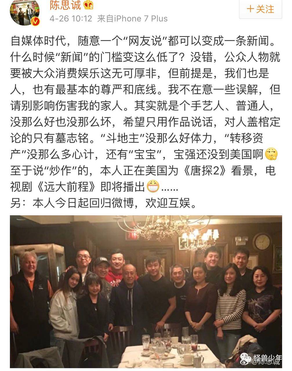 直到上月月底,消失3个多月的陈思诚才重新回到观众视野。