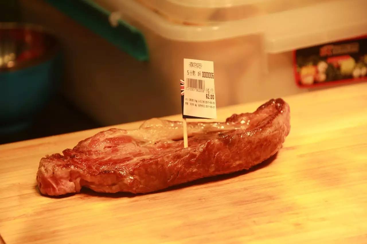 程心在选择牛排的时候,收银员会在一旁推荐熟度,解释草饲和谷饲的区别,并纠正食客们的点餐方法——牛排点餐只有五分、七分或九分熟,没有四、六、八分的熟度。程心为她的肋眼牛排付了94元。